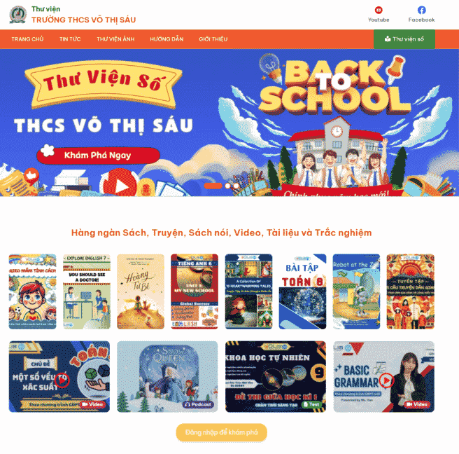 Ebook: Nhà trường cung cấp Ebook bộ sách giáo khoa, Ebook sách giáo viên mà trường đã chọn lựa và các Ebook học tiếng Anh bằng AI hay eBook tham khảo lên thư viện số để học sinh và giáo viên tham khảo khi không mang sách giấy bên cạnh.